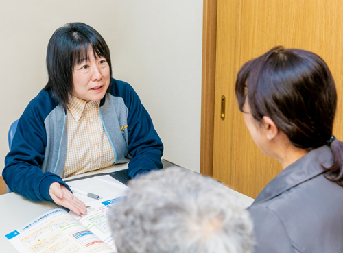 私たちケアマネージャー(介護支援専門員)がご自宅を訪問し、パンフレット等で詳しくご説明します。
