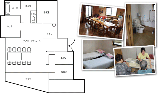 食事・入浴・排泄の介護、健康チェック、レクレーションを行います。健康であることは、薬に頼るのではなく人間が本来持つ自然治癒力が大切であることに着目し、脳と心と身体が活性化する環境を提案します。